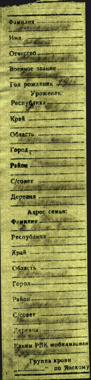 31) Пулемётчик Турдиев Абдила (Абдула) 1920 (1921) г.р. Призван: в 1940 году, Базар-Курганский РВК, Киргизская ССР, Джалал-Абадская обл., Базар-Курганский р-н. Уроженец: Киргизская ССР, Джалал-Абадская обл., Ачинский р-н, Могольский с/с, к/з Правда. Разыскивали жена и сестра. По спискам Базар-Курганского РВК за 1947 год считается пропавшим без вести с 1943 года.