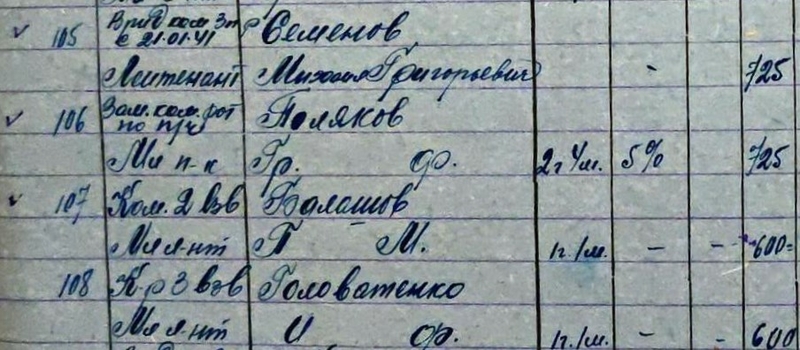 20) Старшина, ст. сержант Лаврик Николай Дмитриевич 1917 г.р. Призван: в 1938 году, Артемовский РВК, Украинская ССР, Сталинская обл., Артемовский р-н. Уроженец: Украинская ССР, Сталинская обл., г. Константиновка. Отстал от части при выходе из окружения. Проходит по Комендатуре г. Ленинграда 02.09.1941 года. Проходит по Ленинградскому ВПП по свидетельству о болезни как «Не годен к военной службе». Выбыл 29.09.1941 года по месту проживания.