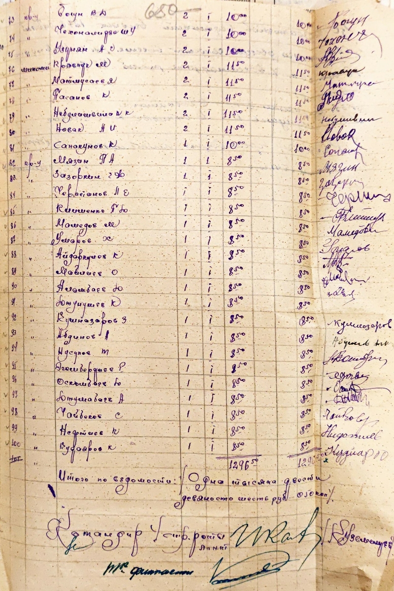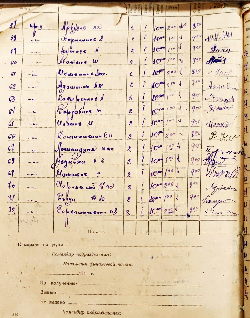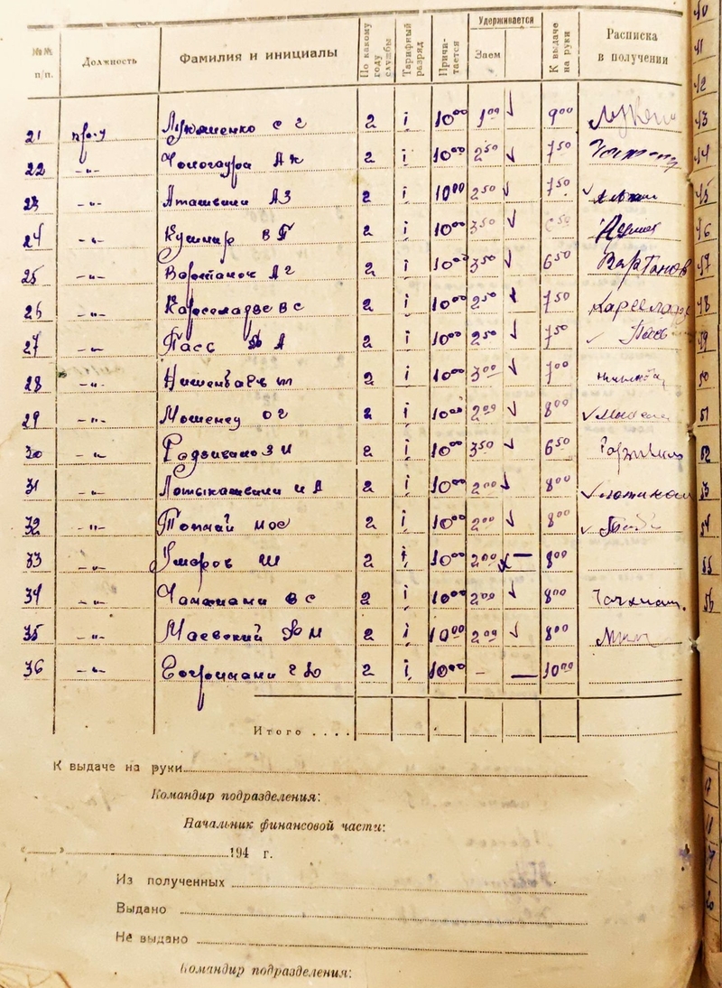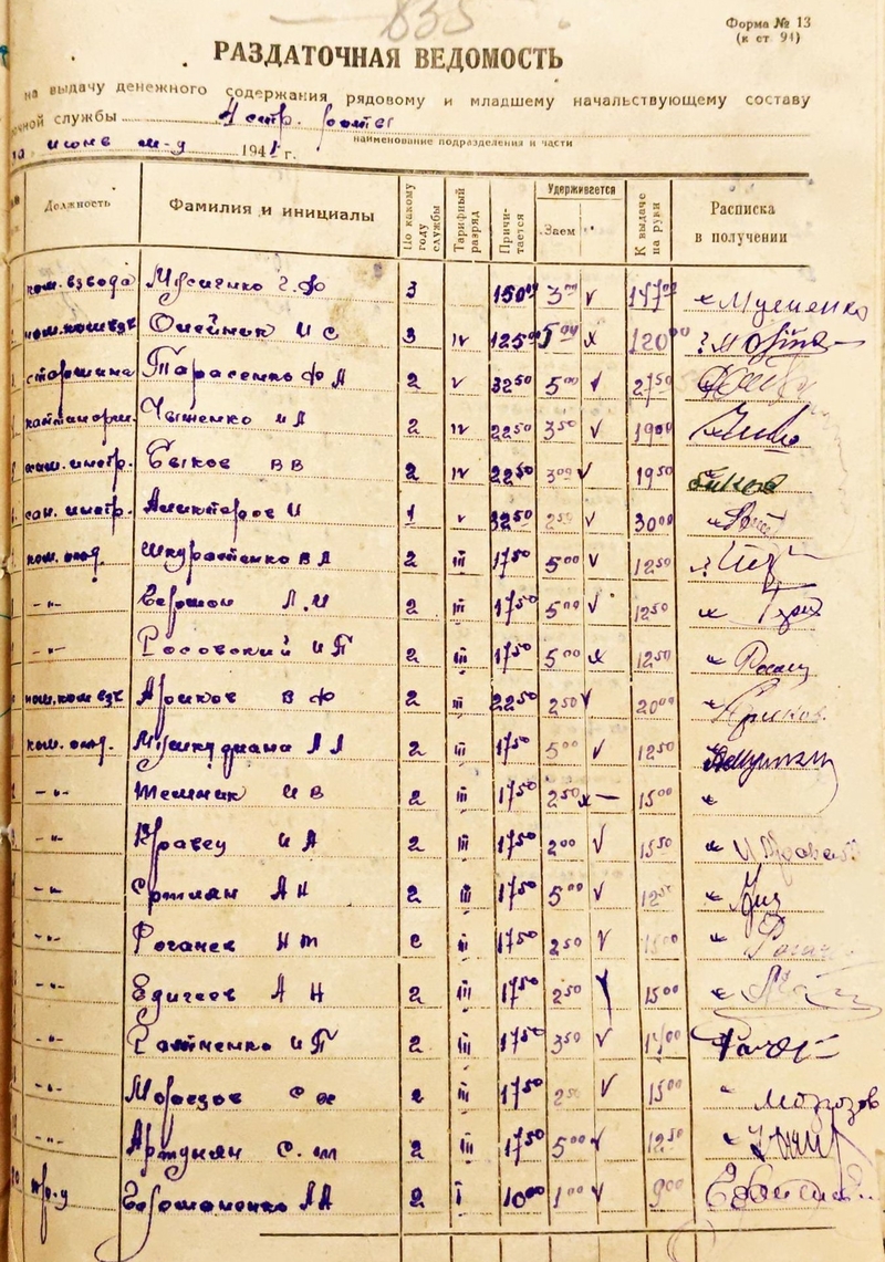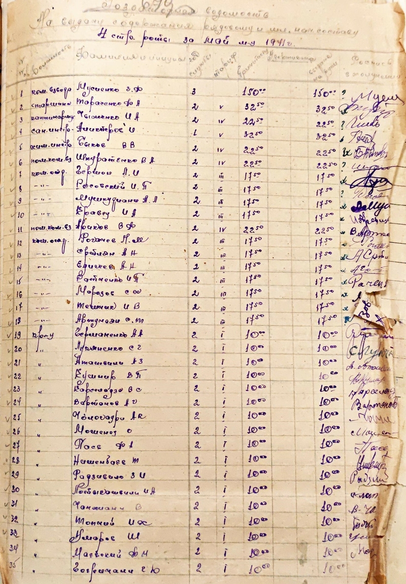 Расчётная ведомость 4 роты 576 СП за июнь 1941 года.