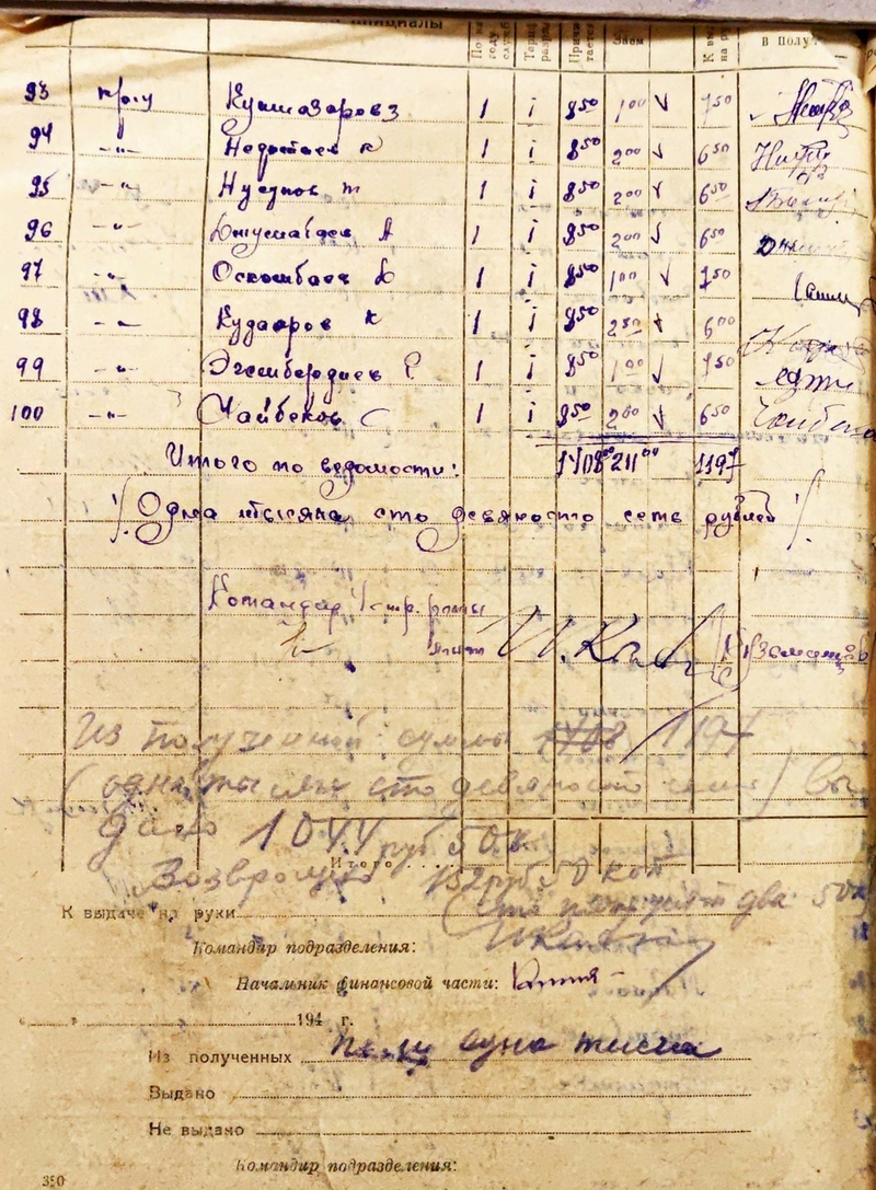 93) Красноармеец Кушназаров Земир. Ранен в бою в августе 1941 года. Проходит по ЭГ2222, выбыл 26.08.1941 года в ВСП46. Дальнейшая судьба не известна.