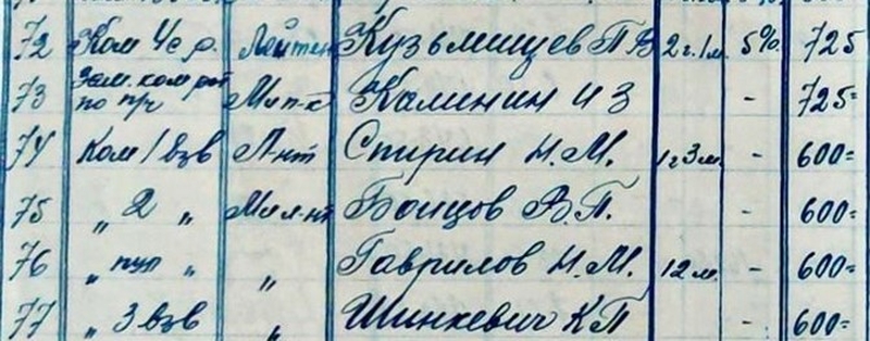 02) Помощник командира взвода Олейник Иван Степанович 1917 г.р. Уроженец: УССР, Сталинская обл., Ямский р-н, д. Варваровка. Ранен в бою 25.08.1941г. Проходит по госпиталям. Из госпиталя выбыл в Невскую оперативную группу 24.10.1941г. В дальнейшем был ранен. Выбыл из госпиталя 08.04.1942 года во Фрунзенский РВК. Демобилизован по ранению 09.04.1942г.