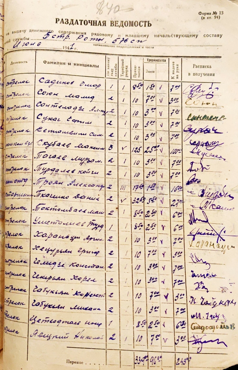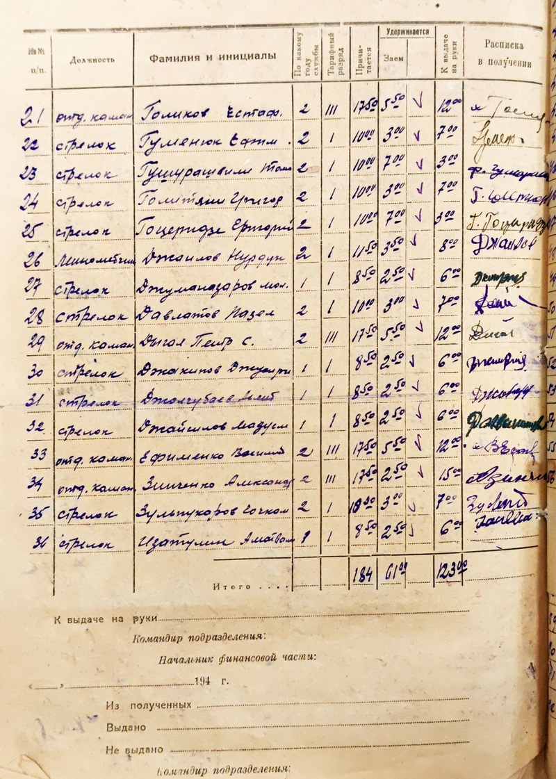 91) Красноармеец, стрелок, вероятно, Сетходжаев Н…. Воин не идентифицирован. В разных ведомостях по-разному написано и роспись не соответствует.