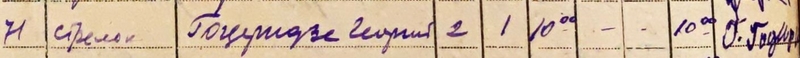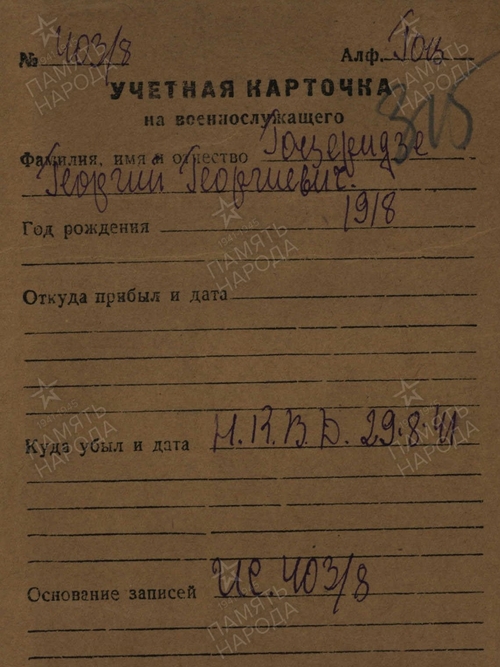 25) Красноармеец, стрелок Гоцеридзе Григорий. Воин достоверно не идентифицирован. В расчётной ведомости за май 1941 года записан как Георгий. Возможно, это Гоцеридзе Георгий Георгиевич 1918 г.р. Проходит по 36 зсбр, выбыл 29.08.1941 года в НКВД. Дальнейшая судьба не известна.