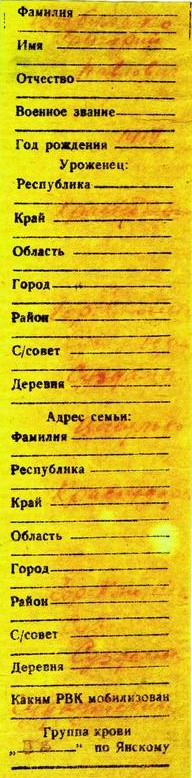 32) Курсант миномётной роты Дедов Евгений Кузьмич 1922 г.р. Призван: 15.09.1940 Кагановичский РВК, Киргизская ССР, Фрунзенская обл., Кагановичский р-н. Уроженец: Амурская обл., г. Благовещенск. Отец: Дедов Кузьма Васильевич. Письменная связь прекратилась с п/п 456 (115СД). Из письма сослуживца, сержанта Логвиненко Андрея «Погиб 23 августа 1941 года». Подорвался на мине. Сам сержант Логвиненко Андрей Николаевич после госпиталя сражался танкистом, был неоднократно награждён, войну прошёл.