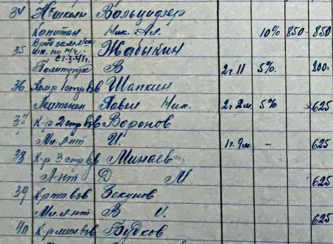 39) Курсант 3 стрелкового взвода Живодуев В. П. (по ведомости за май 1941 года Живодуев В. Л.). Воин не идентифицирован.