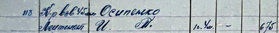 Командир взвода ПТО 45мм 3 батальона лейтенант Осипенко Иван Трофимович 13.02.1921 г.р. Жена: Осипенко Таисия Васильевна, Ростовская обл., Азовский р-н, с. Поркатое (Потр-Каст). По спискам 115СД считается пропавшим без вести 31.08.1941 при выходе из окружения.